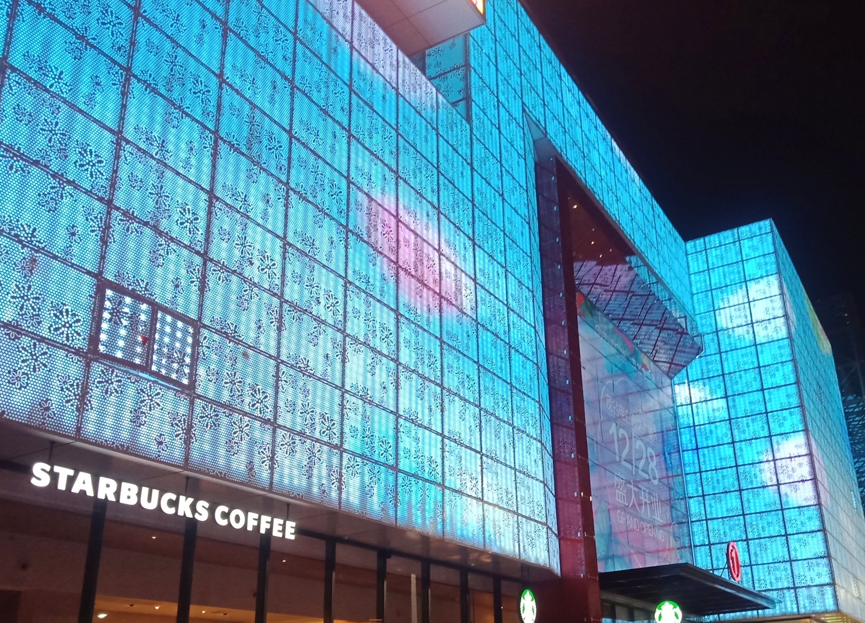 外墙有变色,外幕內窗有波浪变幻滑动,
