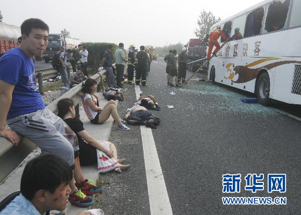 新华网辽宁盘锦7月18日电(记者王炳坤)17日下午,京沈高速公路发生一起大客车与货车追尾事故,目前已造成9死9伤。记者赶赴盘锦市采访了解到,行驶中的大货车因刹车抱死突然停车,致大客车躲避不及追尾,酿成这起重大交通事故。
