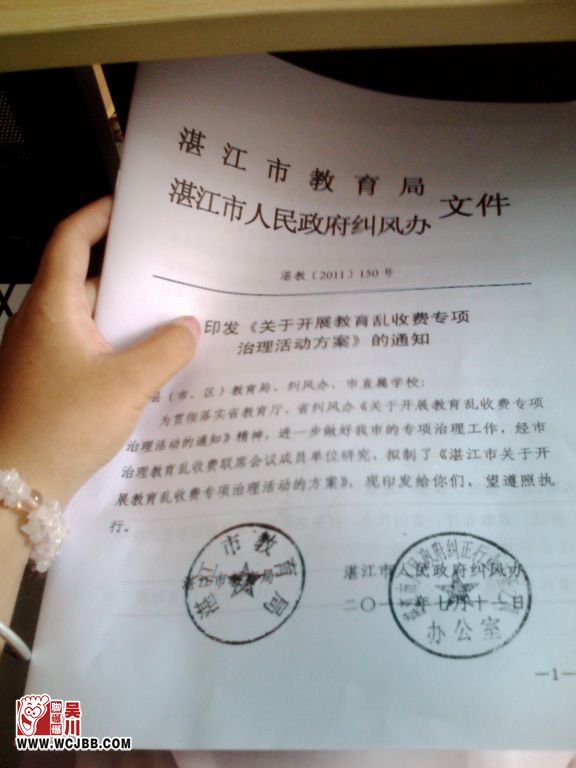 “吴川市教育乱收费专项治理工作会议”主要内容: