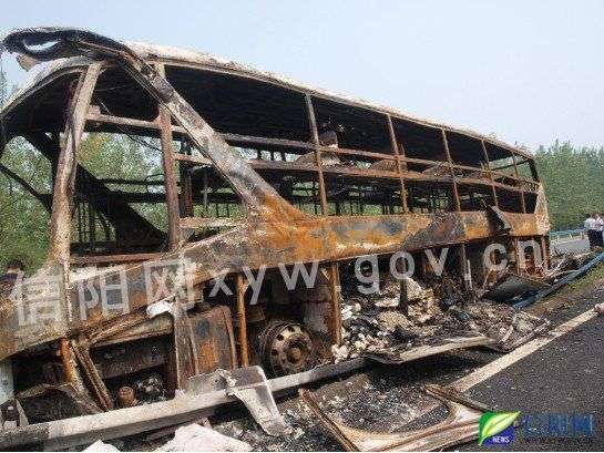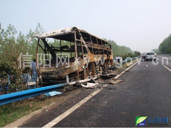 雪 雪雁南飞 小学三年级 注册 2008-05-29 消息 246 反馈评分 0 点数 1 2011-07-22 #1 新华网郑州7月22日电(记者刘金辉)22日凌晨4点左右,京珠高速从北向南948公里处,信阳明港附近一辆大客车发生燃烧,客车共35座。当地紧急救出6人,其中1人重伤。其余人员生死情况不明。公安、消防正在紧急处置。 据信阳市公安局介绍,救出的6人中包括驾驶员,其为中度烧伤。该客车是一辆从威海到长沙的双层卧铺客车。目前,其余尸体已经被烧至炭化,无法辨别尸体,只有通过DNA验证才能辨别尸体的身份和人数。 其中,救出的1名重伤者被安排在驻马店159医院救治(一家部队医院),其余5人在信阳市中心医院救治。