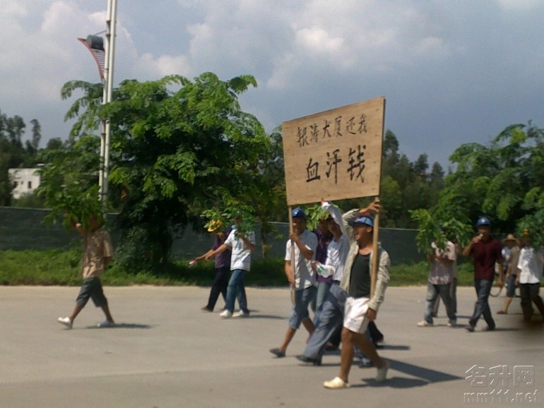 多 多言堂 博士后 注册 2009-09-18 消息 1,611 反馈评分 10 点数 61 2011-09-16 #1 今天下午14时,位于茂名电白县城水东镇海滨大道的银涛大厦(茂名银涛房地产开发有限公司),建筑工人们集体游行讨薪,听说银涛大厦老板拖欠工人们三个月工资(六十多万)还没支付,工人们中秋节也没钱回家过节,今天一大早再次到工地讨薪无结果,集体游行讨薪。 附件 0001478bipbxbdbb9184cd2.jpg 97.4 KB · 查看: 416 0002466zzseeiduzeiwkv49.jpg 102.3 KB · 查看: 359 00020372rnt2m0n52mv00i6.jpg 78.8 KB · 查看: 387 00022477n7h29fjgiw7vkj9.jpg 79.9 KB · 查看: 395