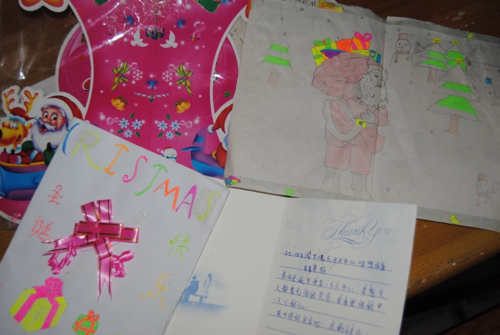 1・圣诞节的时候学生自制的卡片(她说平时没多少零花钱,所以用稿纸画了个卡片)