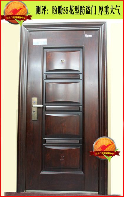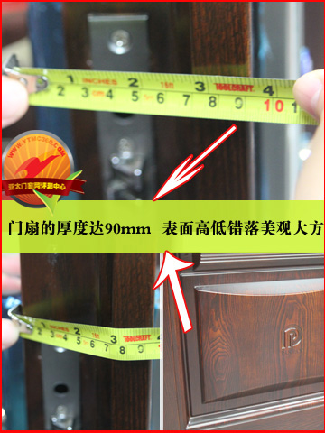 这款防盗门采用经公安部门检测合格的防盗专用锁,在锁具处有3.0mm以上厚度的钢板进行保护。而且这款门为多方位锁具,其优点是不仅门锁锁定,上下横杆都可插入锁定,对门加以固定,大大增加了门的防撬性能。