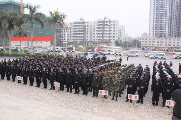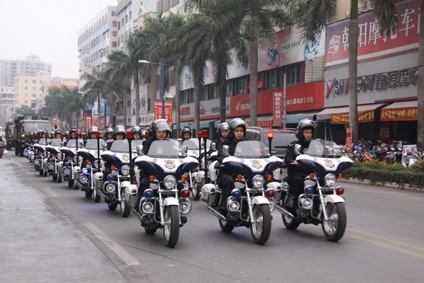 12月27日上午,电白县公安局在县大会堂前隆重举行冬季严打整治行动誓师大会暨警用摩托车派发仪式,以此次会议为标志,为期90天的新一轮声势浩大的冬季严打整治行动全面拉开帷幕。市长助理、县委副书记、县长黄爽,县委常委、县委政法委书记盘茂,县政府副县长、县公安局长黄晓出席会议;县公安局全体民警、职工、辅警,武警、消防、边防官兵共一千余人参加誓师大会。大会由县公安局政委吴平主持。