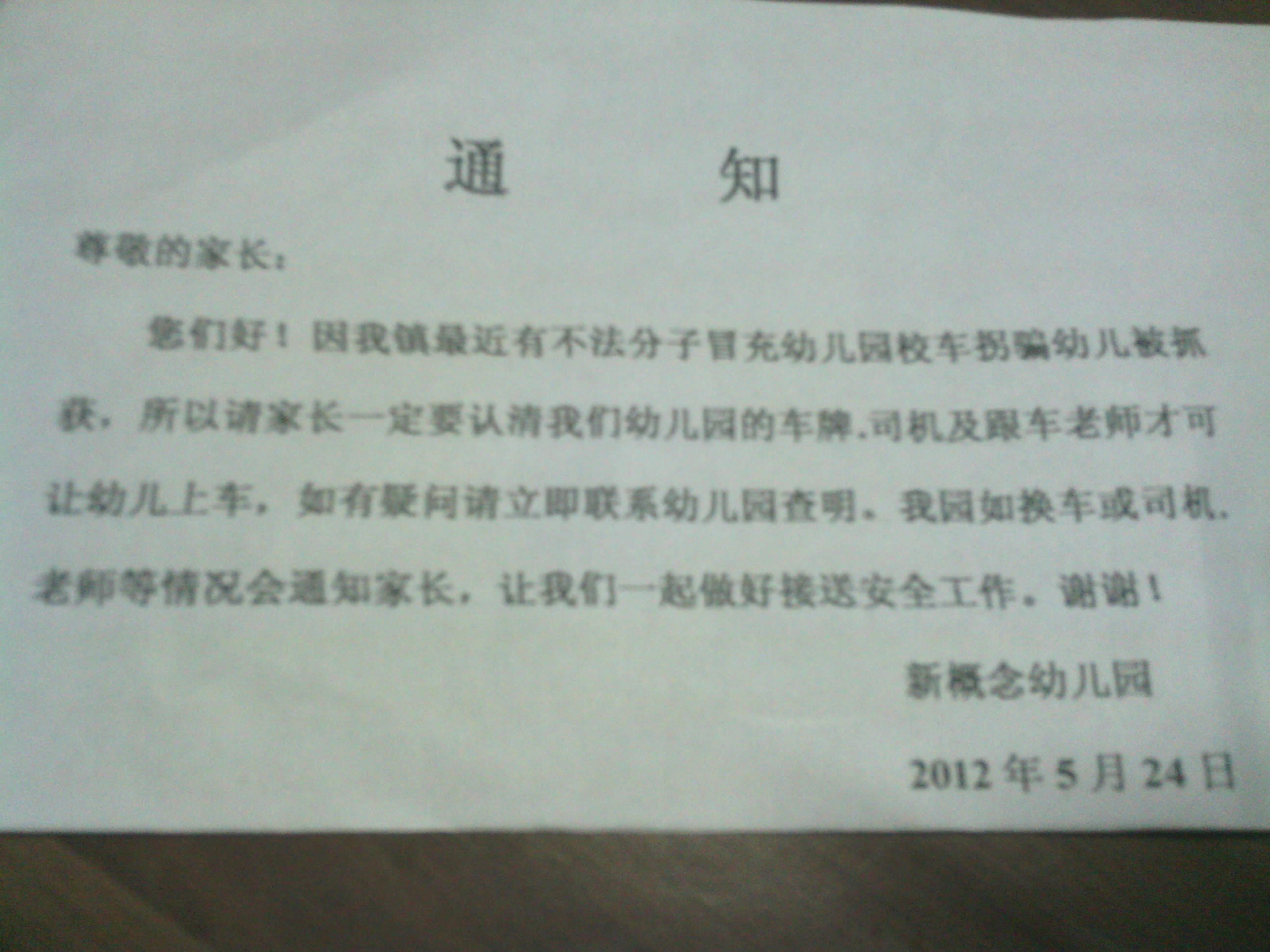 0668.c 大学四年级 注册 2011-09-17 消息 904 反馈评分 8 点数 1 2012-05-25 #23 昨天看到亲戚儿子所在的爵山某幼儿园的通知,难道幼儿园说的是假话,如图 附件 IMG_20120525_194910.jpg 367.8 KB · 查看: 288