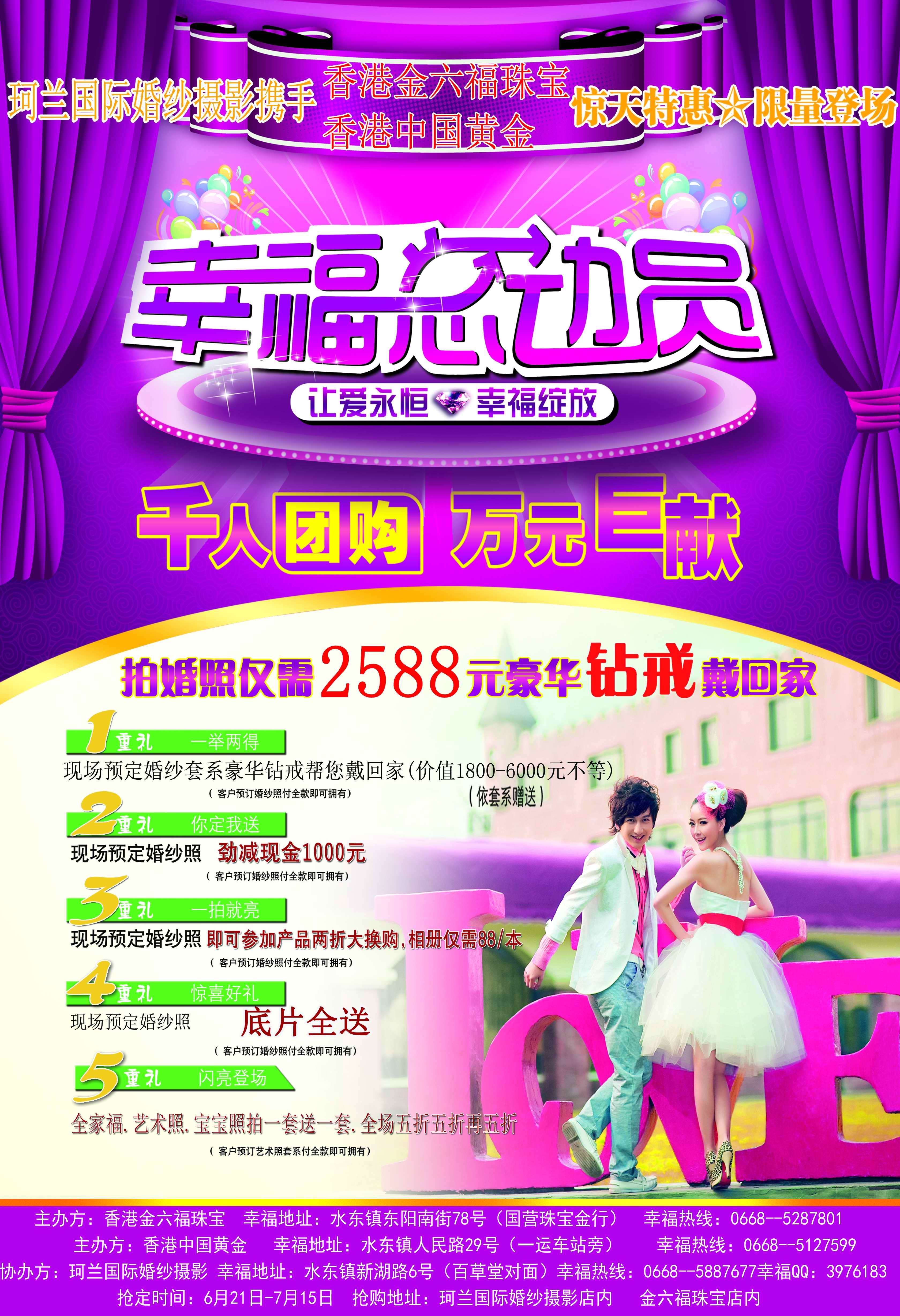 珂 珂兰国际婚纱摄影机构 幼儿园 注册 2012-06-22 消息 11 反馈评分 0 点数 0 2012-06-23 #2 珂兰国际婚纱《幸福总动员》产业联盟抢购惠盛活动抢定 附件 111.jpg 1.1 MB · 查看: 317