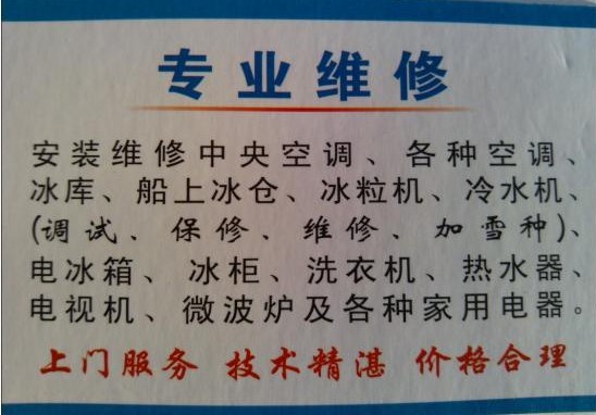恨 恨海情天 幼儿园 注册 2012-06-05 消息 18 反馈评分 0 点数 0 2012-07-09 #1 ]专业上门安装。。拆装空调。。.加雪种。。清洗。。保养。。维修电冰箱。。冰柜。。热水器。。及各类家电器等。。。。我们以精湛的技术。。合理的价格真情为你服务 附件 0V(7OLXA`K4OR$])3`NN%}0.jpg 52.3 KB · 查看: 414 GTZP1L~{2Q`~COO9HD)5AK3.jpg 50.8 KB · 查看: 432