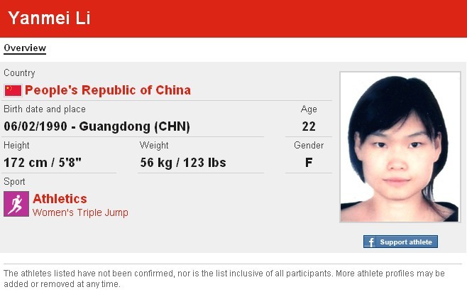 令我不解的是,8月3号是有奥运女子三级跳远预选赛,可是没有看见有中国籍的选手。求解。