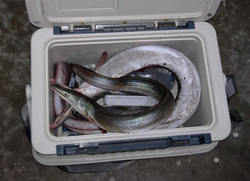 不仅出现了金色小沙丁渔汛,前段时间大亚湾区金门塘村40多艘钓鳗船也获得丰收。据了解,“粤惠阳05025”等7艘钓鳗船最高一个航次收获近20担鳗鳝,收入约7万元。面对满舱银闪闪的大鳗鳝,金门塘村船主苏秋来眉开眼笑地说:“一绳钓(约15公里)收获近20担鳗鳝,这样的好渔汛往年很难碰到,我在这个汛期遇到2次了,实在好彩。”而船主李金春说,自去年底以来,该村从事钓鳗作业的快艇普遍获得好收益,春节前捕到的都是10公斤左右的大鳗鳝,售价每公斤在70元左右,由于鱼货多,价格比往年稍有下降。)