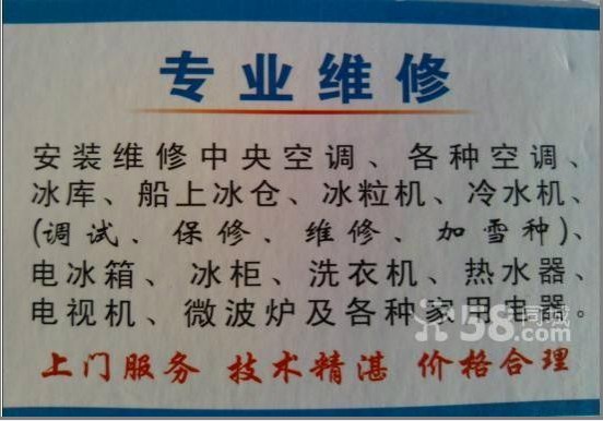 专业上门安装。。拆装空调。。.加雪种。。清洗。。保养。。维修电冰箱。。冰柜。。热水器。。及各类家用电器等。。。。我们以精湛的技术。。合理的价格真情为你服务