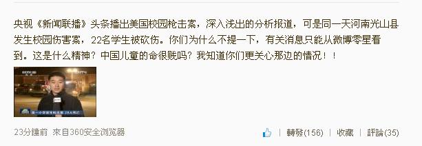 央视大量报道美校园枪击案有掩盖同天发生在国内的砍伤22名学生的凶案之嫌!