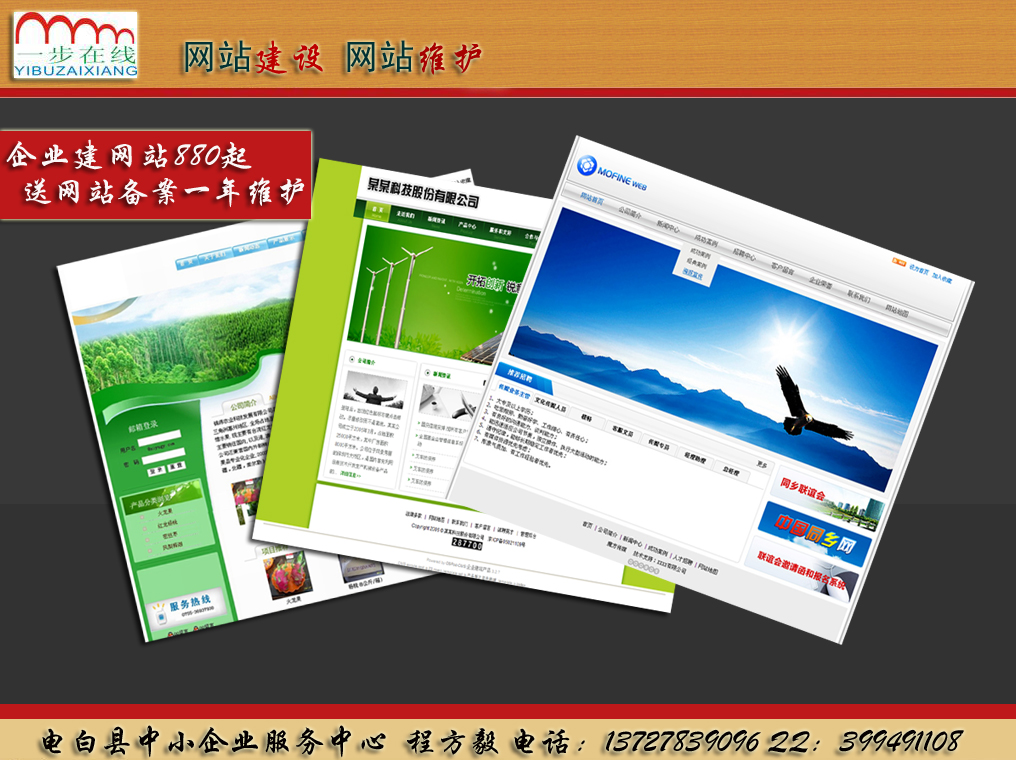 好消息!好消息!春节期间茂名地区网站建设大优惠,公司企业网仿站白菜价300元。联系电话:13727839096,QQ:399491108[attachmentid=307883]