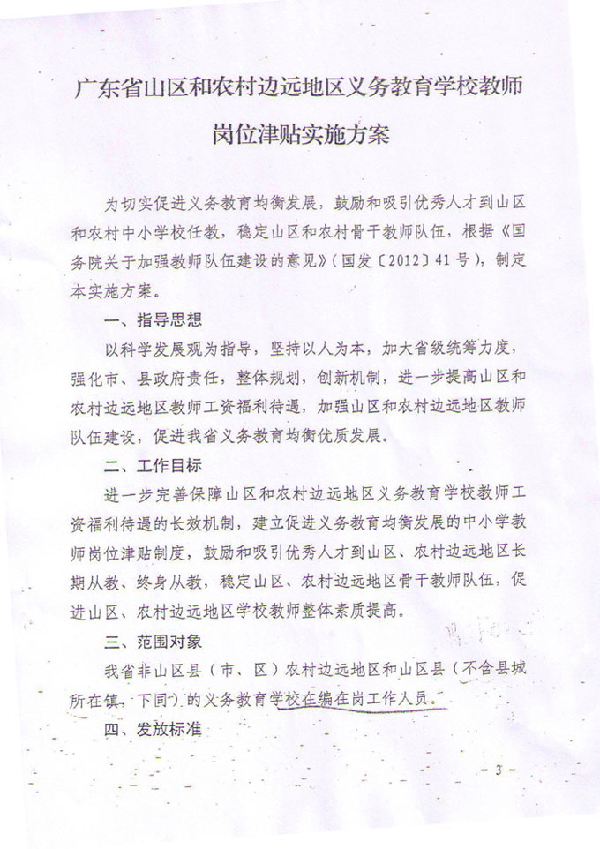 广东农村教师岗位津贴(从2013年1月起,每月不少于500元)只有小学及初中教师才能享受,高中教师与此无缘