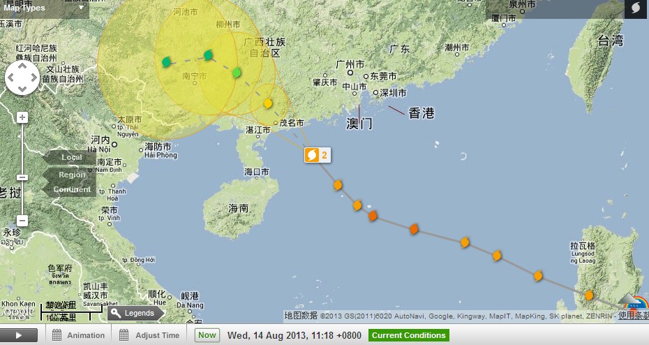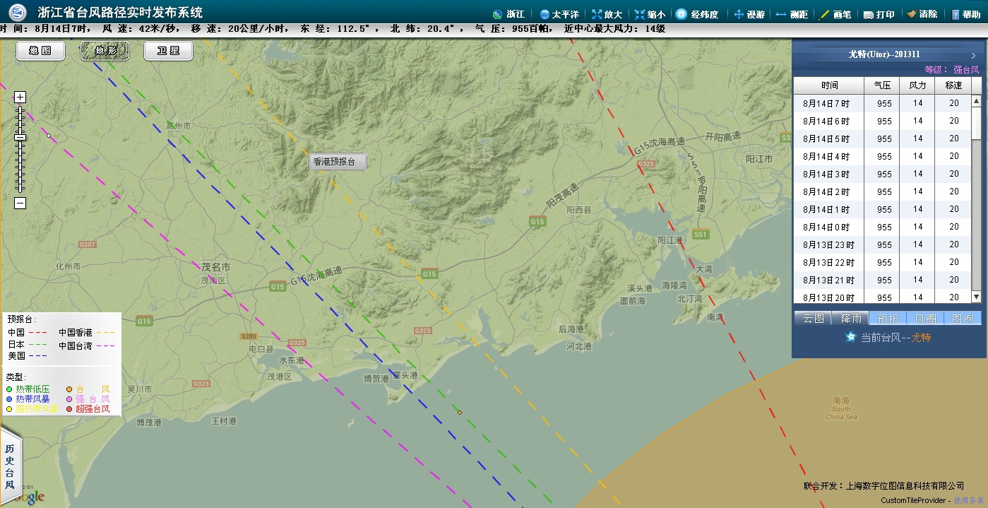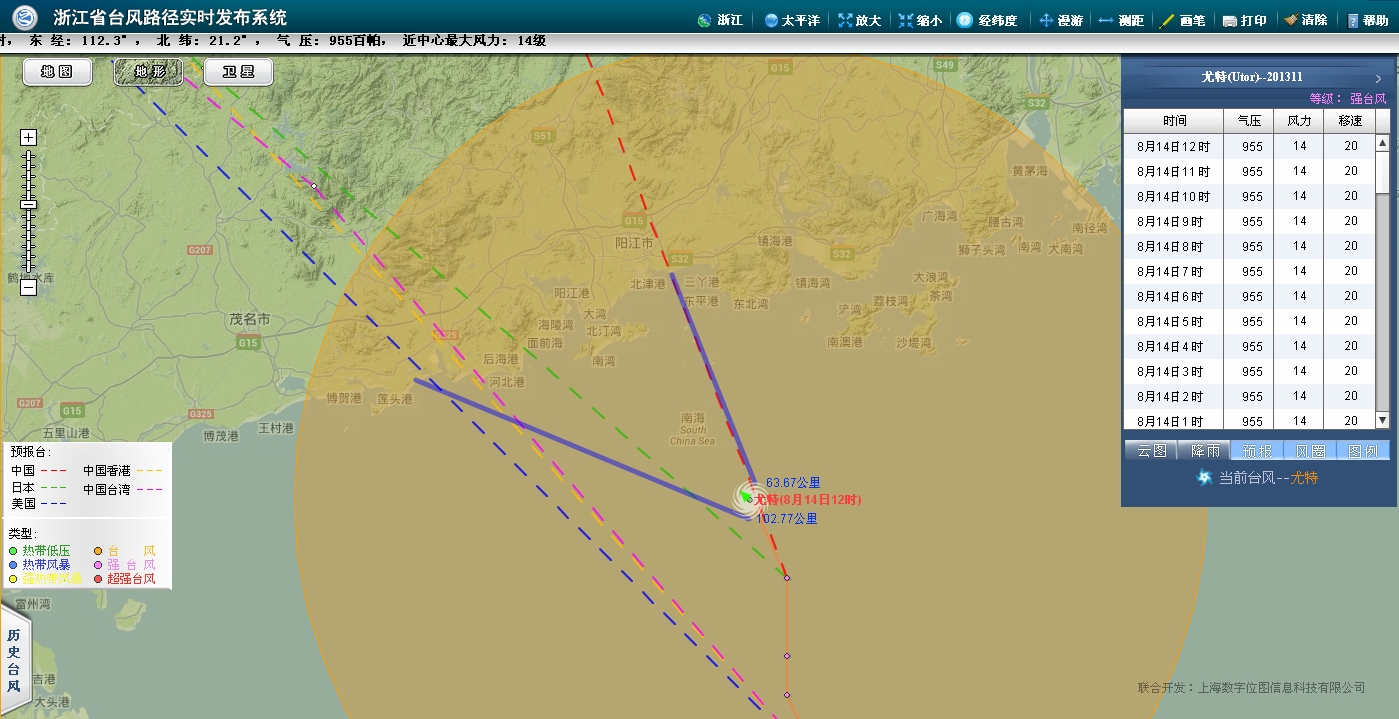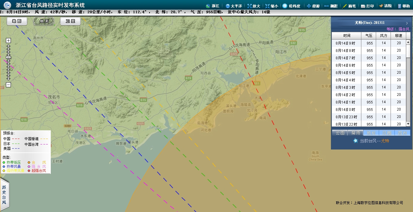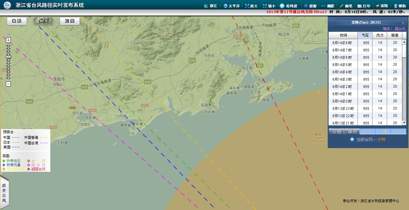 hchcc 荣誉会员 荣誉会员 注册 2004-08-21 消息 7,467 反馈评分 1,833 点数 191 性别 男 2013-08-14 #66 实时:http://typhoon.zjwater.gov.cn/ ,开始偏阳江方向去了。