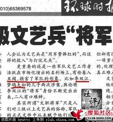 环球日报:李双江梦鸽夫妇损害军队形象
