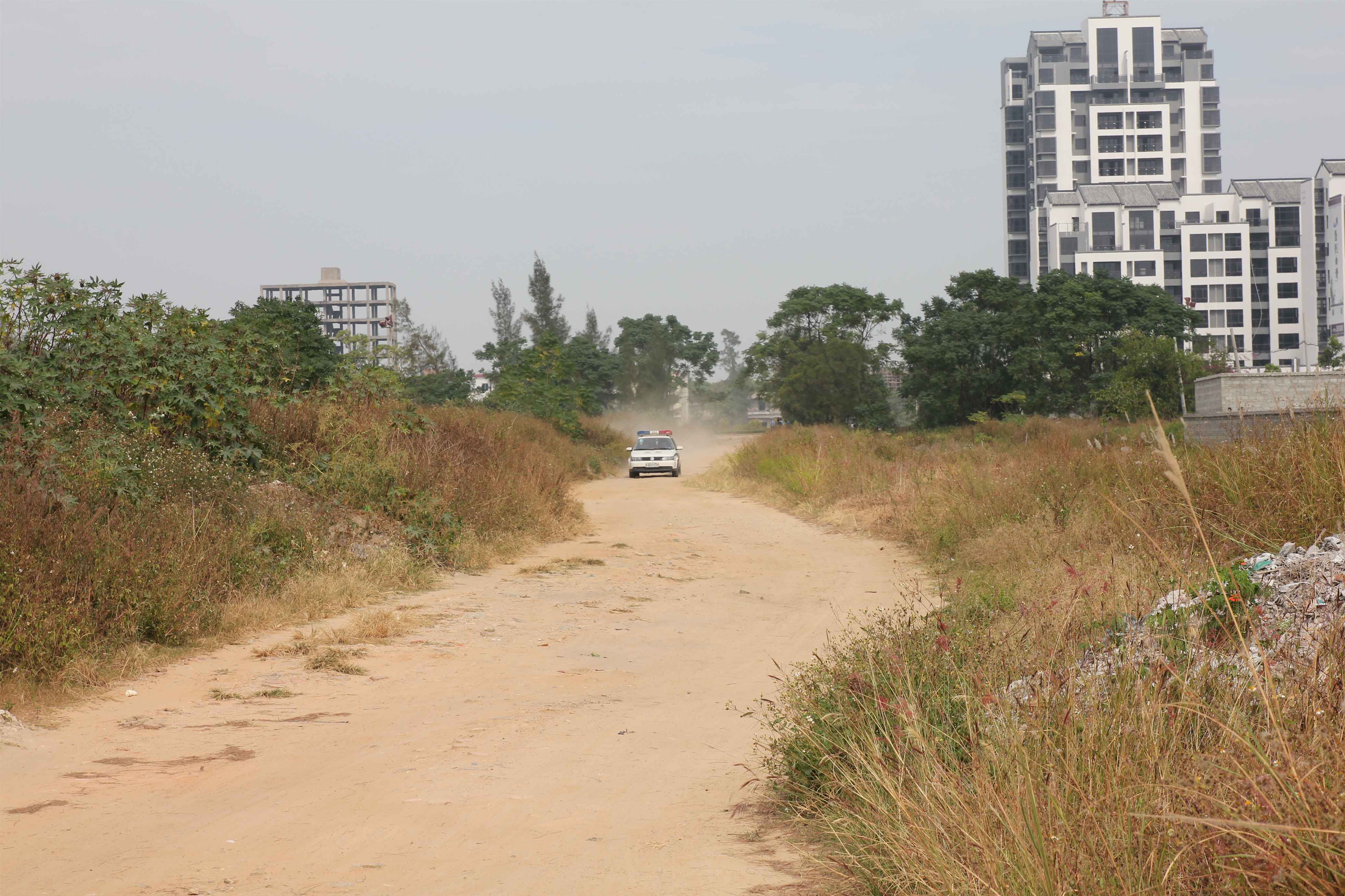 A点为茂港区区府门口,A点为出发点,蓝色箭头方向为骑行方向,B点到C点路段为沙石路,A点到B点,C点到D点,D点到A点为水泥路,E点为冲刺点。