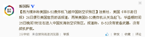 东海防空识别区设定才四天,美帝竟敢来犯,外交部又要抗议了。