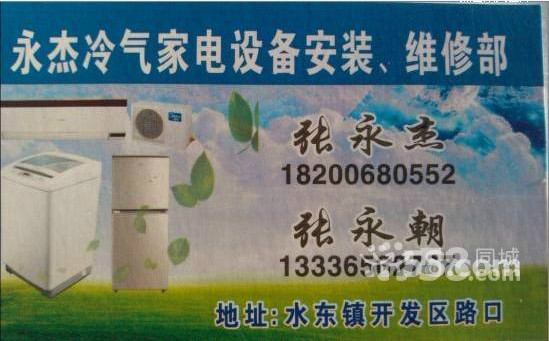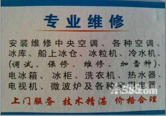 专业上门安装。。拆装空调。。.加雪种。。清洗。。保养。。维修电冰箱。。冰柜。。热水器。。及各类家用电器等。。。。我们以精湛的技术。。合理的价格真情为你服务 联 系 人:张永杰 联系电话: 18200680552