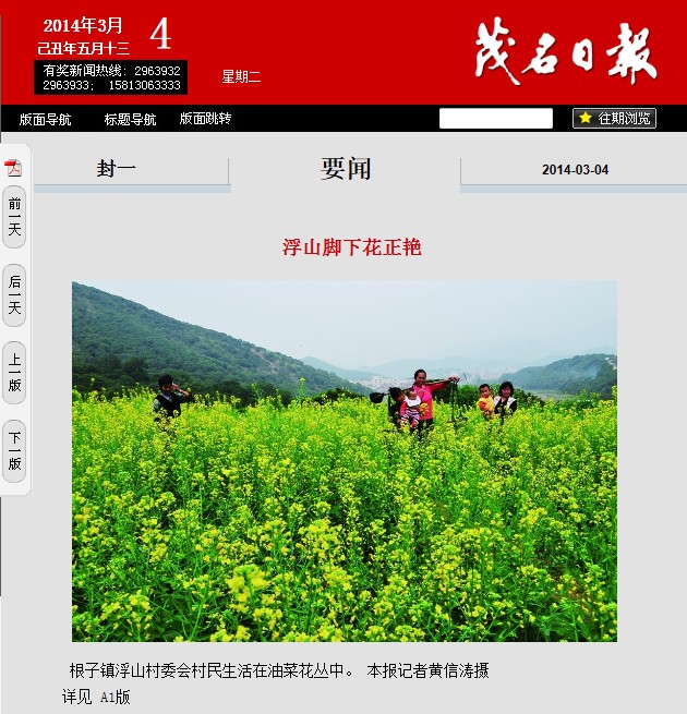 活动安排:3月8日星期六早上7:40-8:00在电白客运中心站集合(地图B点),8:00准时出发,过时不候!行程首先从水林路经林头/霞洞化普进根子,在根子墟汇合茂名市区网友尝地方美食,然后再出发到浮山村委会平山田村看油菜花、游览冼太庙爬浮山岭,从浮山岭下撒后再视情况而安排聚餐(费用一般约30元/人以下,现场AA,也可自理),返程经羊角上七那线返水东,全程约110公里。