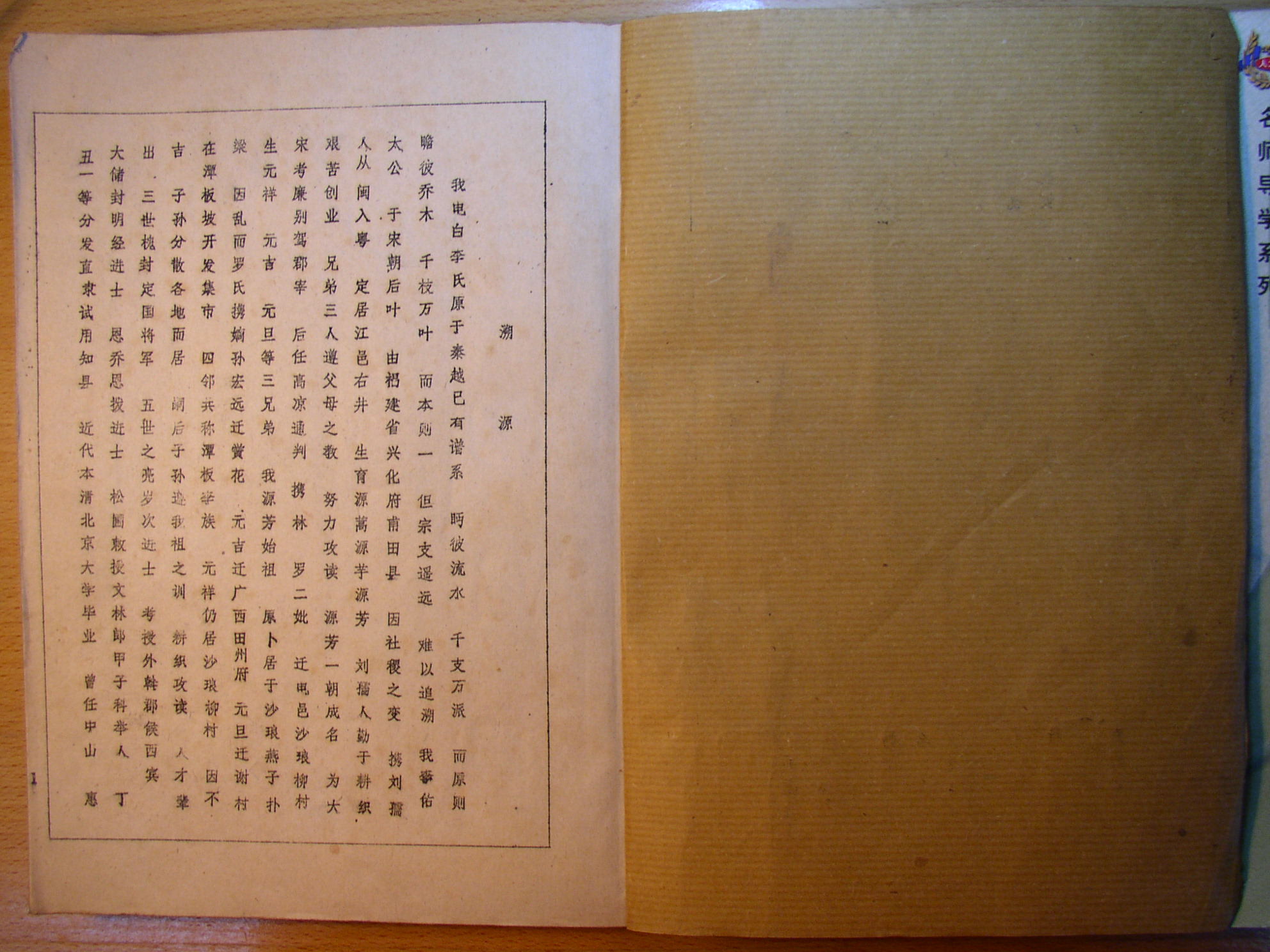 李佑太公由福建兴化府莆田县入粤定居江邑右井  生育源篙  源芋  源芳