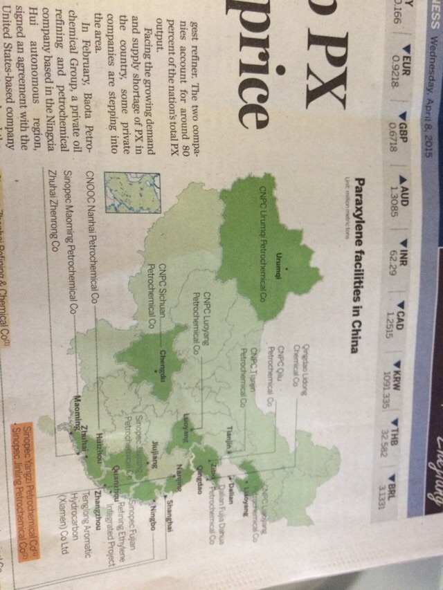 byronroy . 荣誉会员 注册 2005-08-17 消息 70,153 反馈评分 356 点数 191 2015-04-08 #185 [attachmentid=339108] [attachmentid=339109] [attachmentid=339110] 今天的中国日报列举了在华PX项目名单,茂名赫然在列! 附件 image.jpg 155.1 KB · 查看: 465 image.jpg 145.2 KB · 查看: 491 image.jpg 152.3 KB · 查看: 489