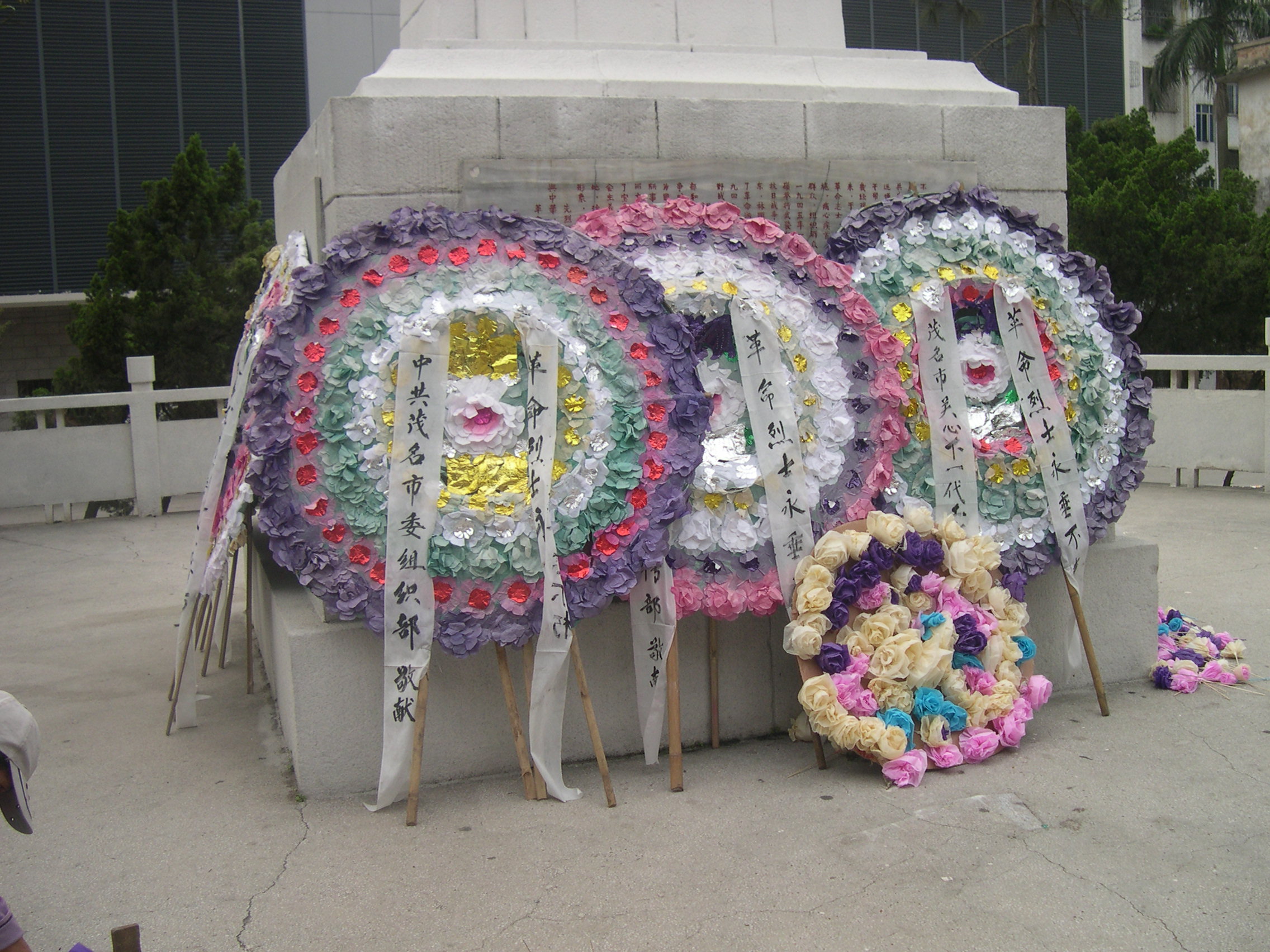 清明节,我到东湖公园“革命烈士纪念碑”,依稀看到,一个星期前,“茂名市中小学生祭扫革命烈士墓活动”曾在这里举行,市委大员陈小锋,电白长黄爽;市、县两级宣传部、教育局、团委、关工委官员以及电白县老游击战士联谊会、电白中小学师生代表参加祭扫,窃认为,这是一个很好的活动,但愿 "继承先烈遗志,弘扬英雄精神"能成为中小学思想教育的主旋律。