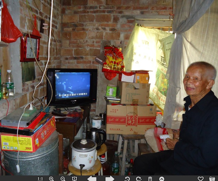 王业愧孤身住在祠堂前右侧的树下,所谓房子就一卧室一厨房,尽管房外的自然环境幽静.若是文人,他定写《陋室铭》.