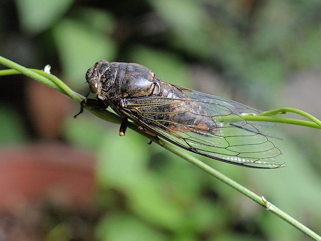 炎热的夏天开始的时候,有一种比春蝉个子小的蝉,就慢慢多起来了。它们学名好像是叫黑蚱蝉,我们当地叫它“E A”(音译), 浑身乌黑透亮,叫声比春蝉要尖细。