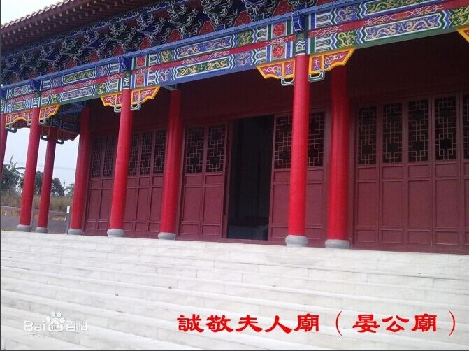 她平叛乱、诛反贼,维护了岭南十余州的安定,[1]保境安民,发展生产,有功于人民,人民崇敬她。为缅怀她的功绩,雕像建庙纪念。解放前粤西各地冼太庙有100多座,但以电白县霞洞镇晏公庙最为宏伟壮丽。晏公庙建在看人坡北端狮子岭向阳坡,坐北朝南,占地约1000平方米,依山势而建。分三殿,后殿地势高,有两尊泥菩萨。中殿面积最大,画栋雕梁,庄严肃穆。置两尊冼夫人身像,形神一模一样。前殿最低,临近庙门。