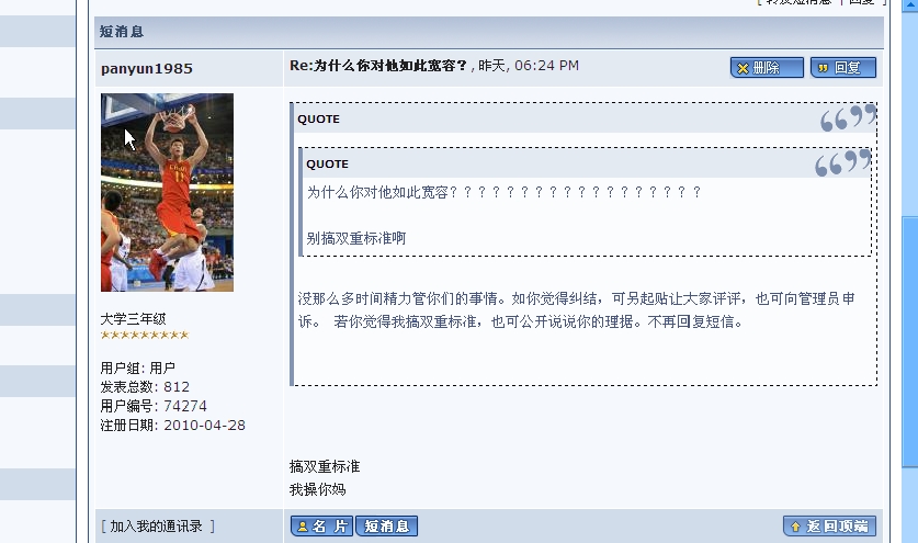 小 小白兔乖乖 大学三年级 注册 2012-11-22 消息 821 反馈评分 0 点数 1 2014-08-11 #14 其实大家都是斯文人来的,人都有逼急的时候,有些人不适合在冲动的时候做决策或者说话,竟然是说错了话,就当没有发生过吧,反正大家都有互相攻击过。。。谁人不犯错呢,有错改了就好了哦。