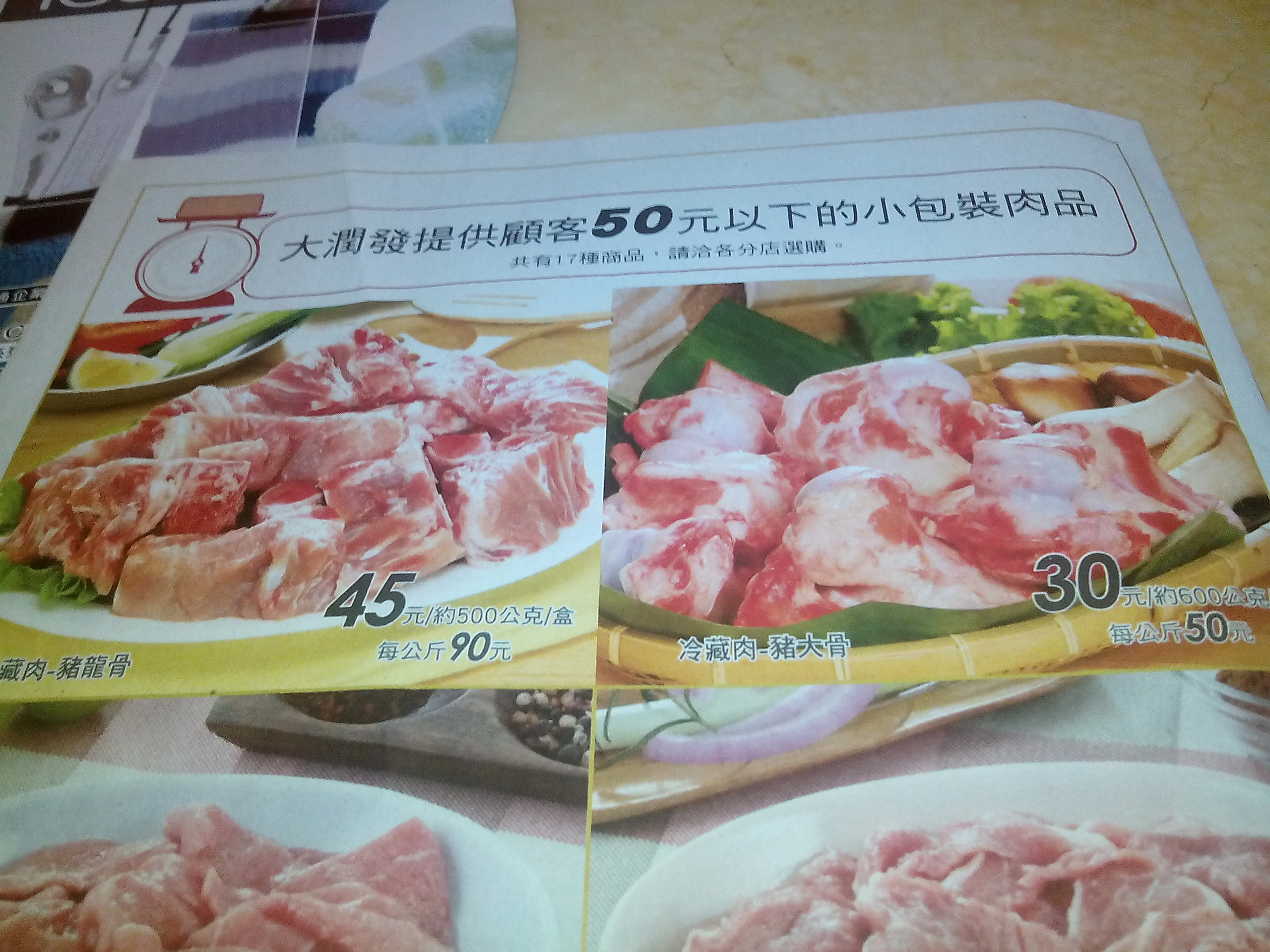 司 司马头陀 研究生 注册 2012-05-27 消息 1,147 反馈评分 9 点数 61 2014-11-10 #28 QUOTE(蛙子 @ 2014年11月09日 Sunday, 01:11 PM) 在台旅行,很多东西想和大家分享。没电脑,上网不便。 今天在台中的市场,询问了猪肉价格,被震惊了,用手机发个贴。 上等排骨,90元一斤,带肉桶骨70元一斤,没肉桶骨30元一条,猪脚50元一斤。 以上价格来自最平民化的两个市场,5个档口。价钱是新台币。今天台这边人民币兑台币是1比4.99多。你震惊了吗?且慢,这斤是台斤,一台斤等于内地的一斤二两。 这些猪肉有没瘦肉精,是否病猪,味道如何我没吃过,不作评说。 这样的物价,台湾佬居然整天嚷嚷,政府无能,物价太高,受不了!这些刁民太没良心了。看着猪头,我理解了为什么要抵制杜汶泽,黄秋生了 [snapback]3714436[/snapback] 不奇怪,你说的是台币