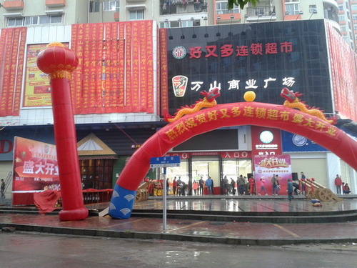 还没剪彩前瓦进去观摩下,还算勉强可以,有三层,一二层已开摆设好侍开业,三层见工人开工,诂计是儿童专区或电动什么的吧?每层都装有平板电梯“就是没有梯级那种“,听万山广场董事长称有7000几平方米?个人感觉还算可以吧?奢望它能物美价廉,也让市民有多点地方选择也不为是件好事吧?也顺祝入驻万山广场个体准业主也生意兴隆!!