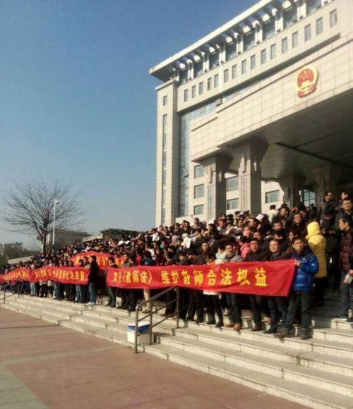 12月23日,安徽含山县数百名教师齐聚县政府门前拉横幅维权。