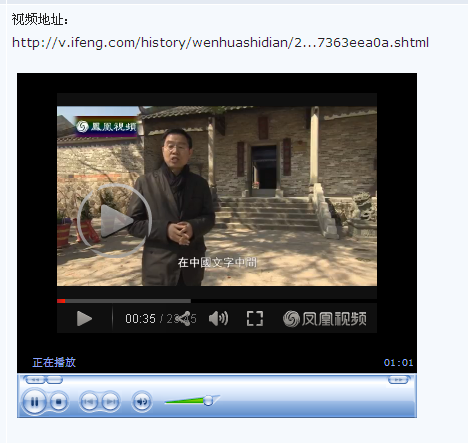 白色孔布 博士生 注册 2006-03-29 消息 1,226 反馈评分 1 点数 61 2015-02-07 #4 视频地址: http://v.ifeng.com/history/wenhuashidian/2...7363eea0a.shtml [WMV]http://v.ifeng.com/include/exterior.swf?guid=0115b556-70dc-4564-af8a-4d87363eea0a&AutoPlay=false[/WMV]