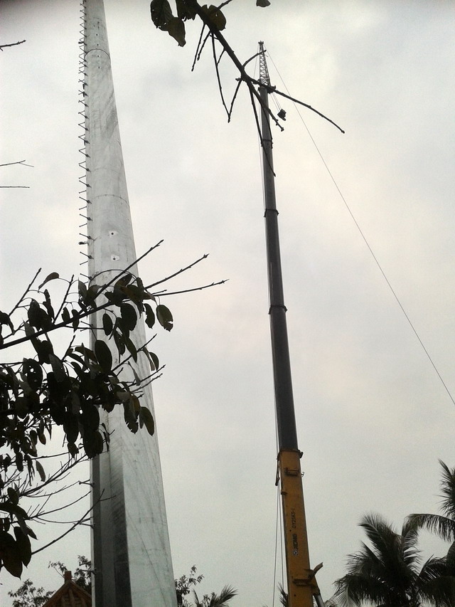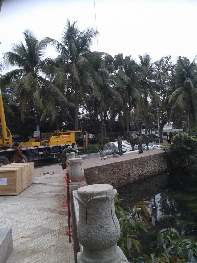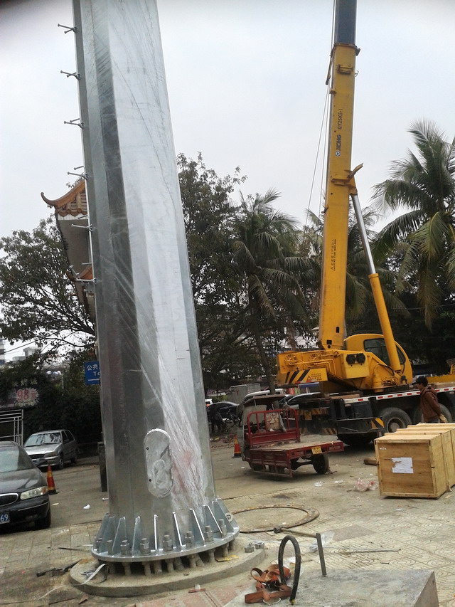 水东西湖拟暂安装的三座高射灯拟安装完成并亮灯