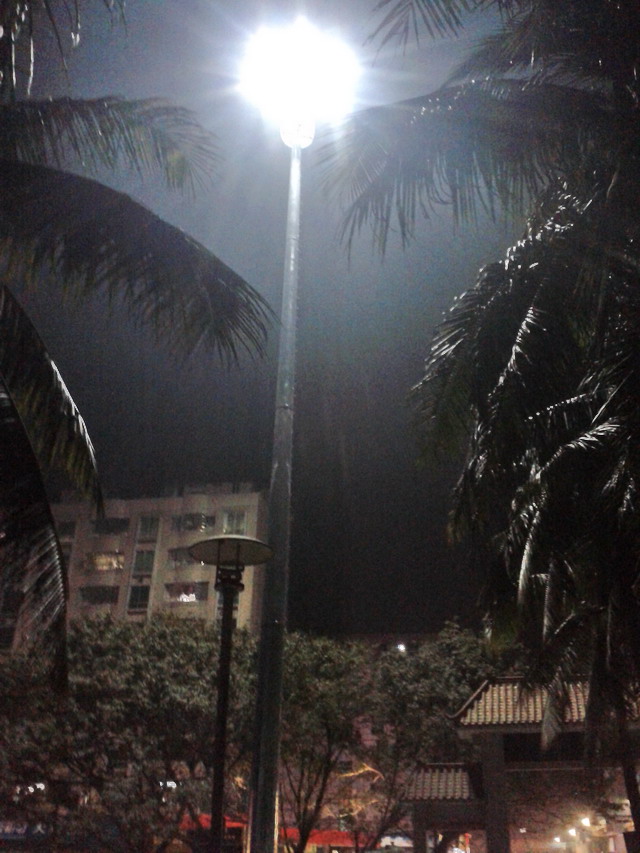貌似暂安装的三座高射灯分布在公园大门口右边,西堤左边即电力局对面,桥头路,