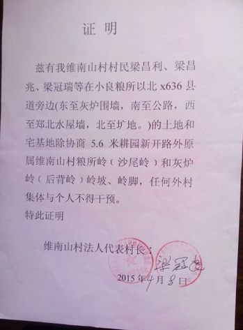 自1998年以来,小良镇联昌村村民梁国成,跨越他本村岭土维南山村,扬言维南山村村民合法的建房用地归他所有,先运来泥土在维南山村村民合法建房用地内进行填土,意图强行霸占土地。并且屡次野蛮、横不讲理要打要杀阻挠村民在此建房施工。造成维南山村民合法证书超期,蒙受损害。