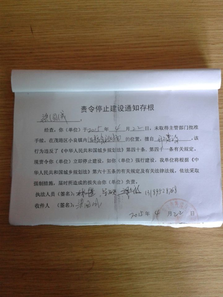 时至今曰,梁国成父子胆大包天,砍菠萝树,拆屋,攀凶无证建设,目无法纪地非法侵权行为还在继续。维南山村民的合法权益仍在不断的受到侵害。为了法律法规的尊严,为了人民生活的安宁,也为了社会的和谐稳定。政府有关执法单位部门应严明法规,制止梁国成父子的非法行为,铲除梁国成的违规建设。