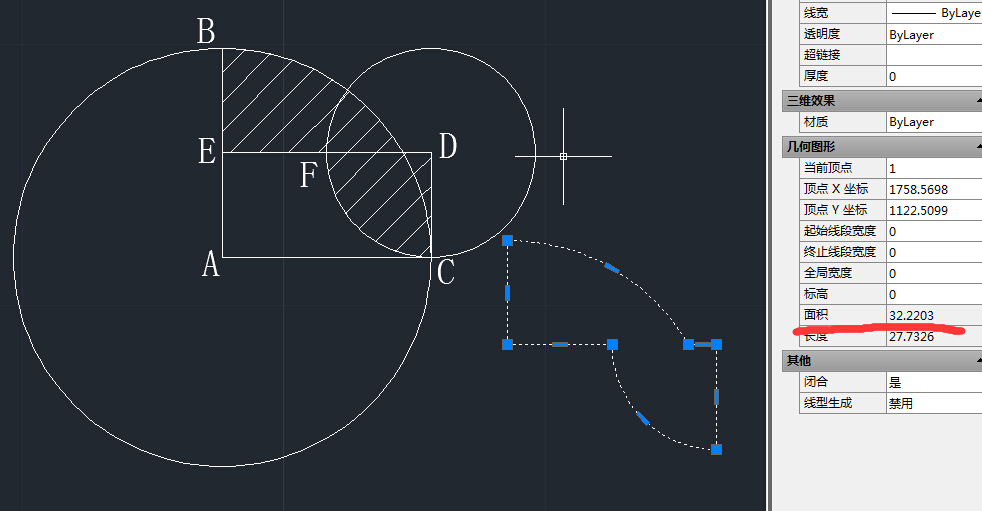 结果为:(44/3)兀-(2X根号48),精确四位小数,结果为32.2203。这应该是用初中学的勾股定理及三角函数知识才解答得出来啊!用六年级的知识如何解答,想请教各位。