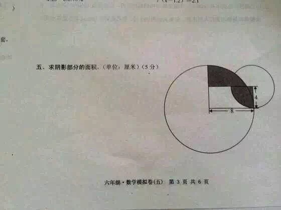 六年级数学老师应会解,但不知六年级是否学过弓形面积计算否?