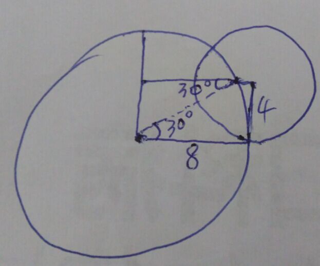 (pi*R^2/3)-(8*4) 为大园的弓形面积,
