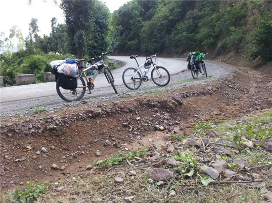 (骑行西藏)第二天,禄丰到楚雄,中午12点,自行车坏了,走不了…不知所措,很无助,或许就要打道回府了,就要放弃了,很难得,才认识两天的骑友不离不弃,陪我去修车,等我回来,冒雨推车几公里,终于修好了车………或许吧,不到500的破车,我也不知道我能走到哪里……但我会尽力,谢谢小志和小伍,如果不是你们,或许今天的我就结束了旅程