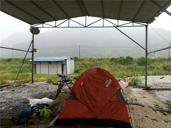 ps:昨夜某工地搭帐篷,工地两位“老兵叔叔”烧热水给我洗澡,一壶不够,就烧了两壶…畅聊过后,搭我回镇里请我吃东西!
