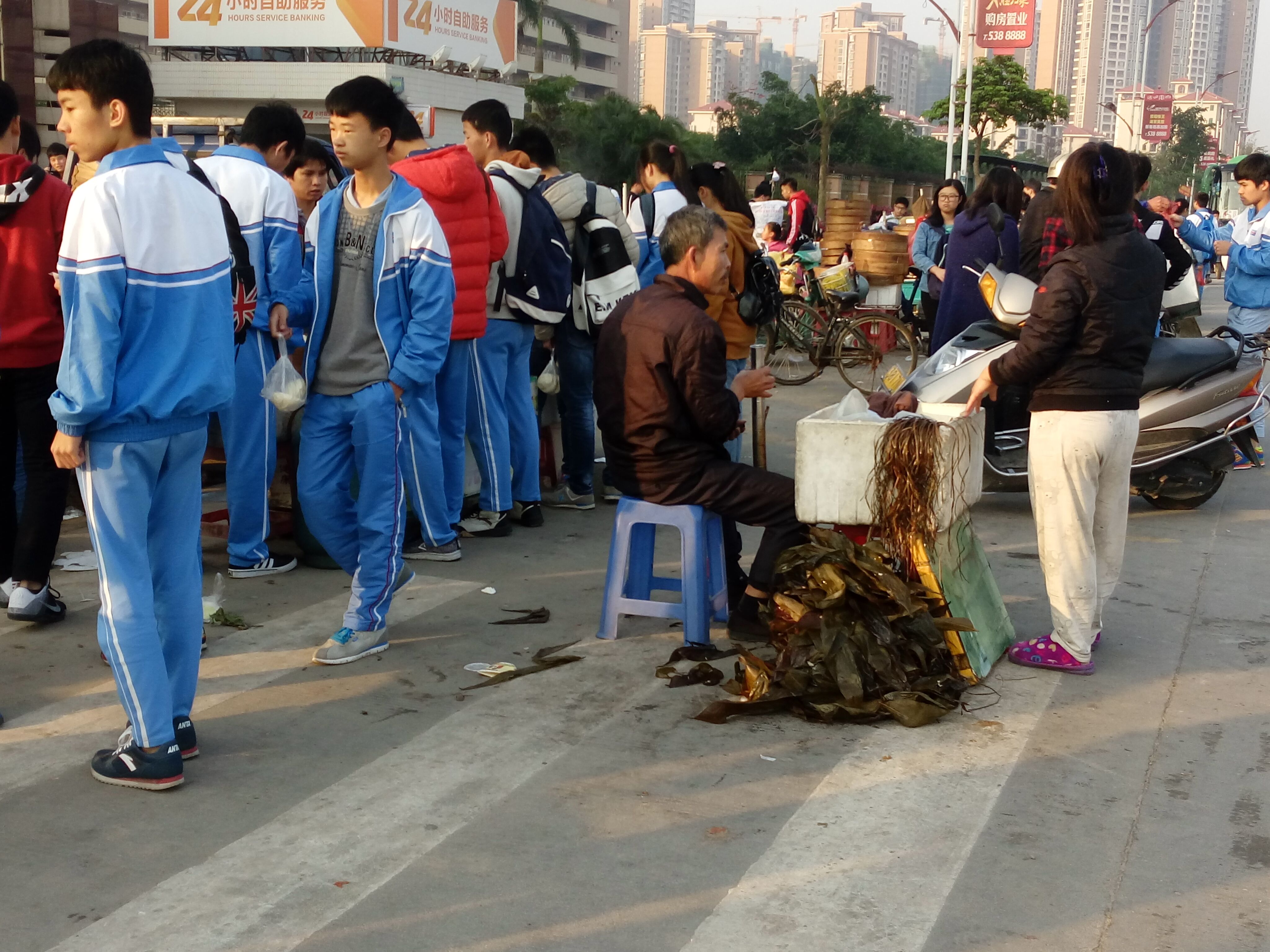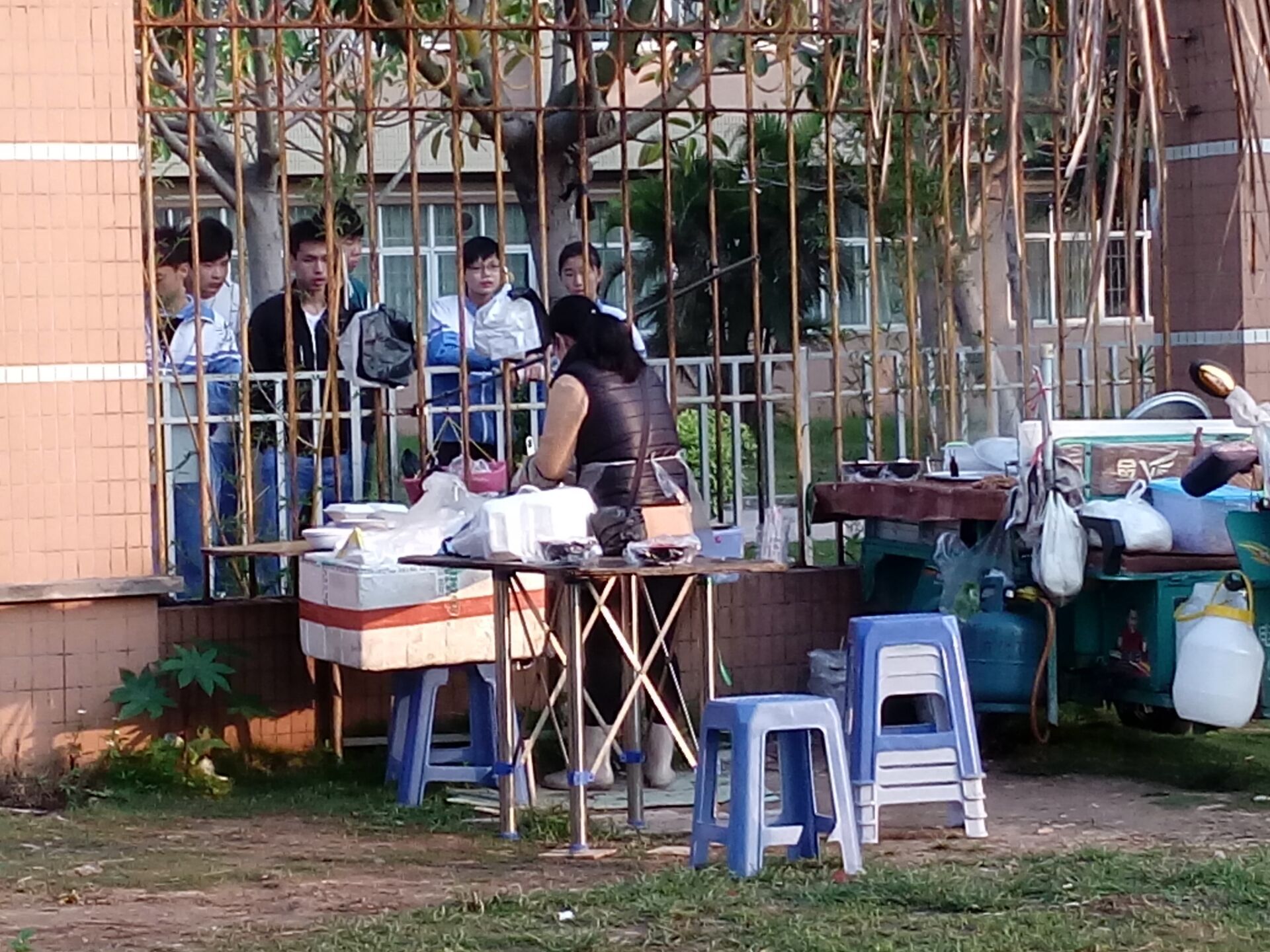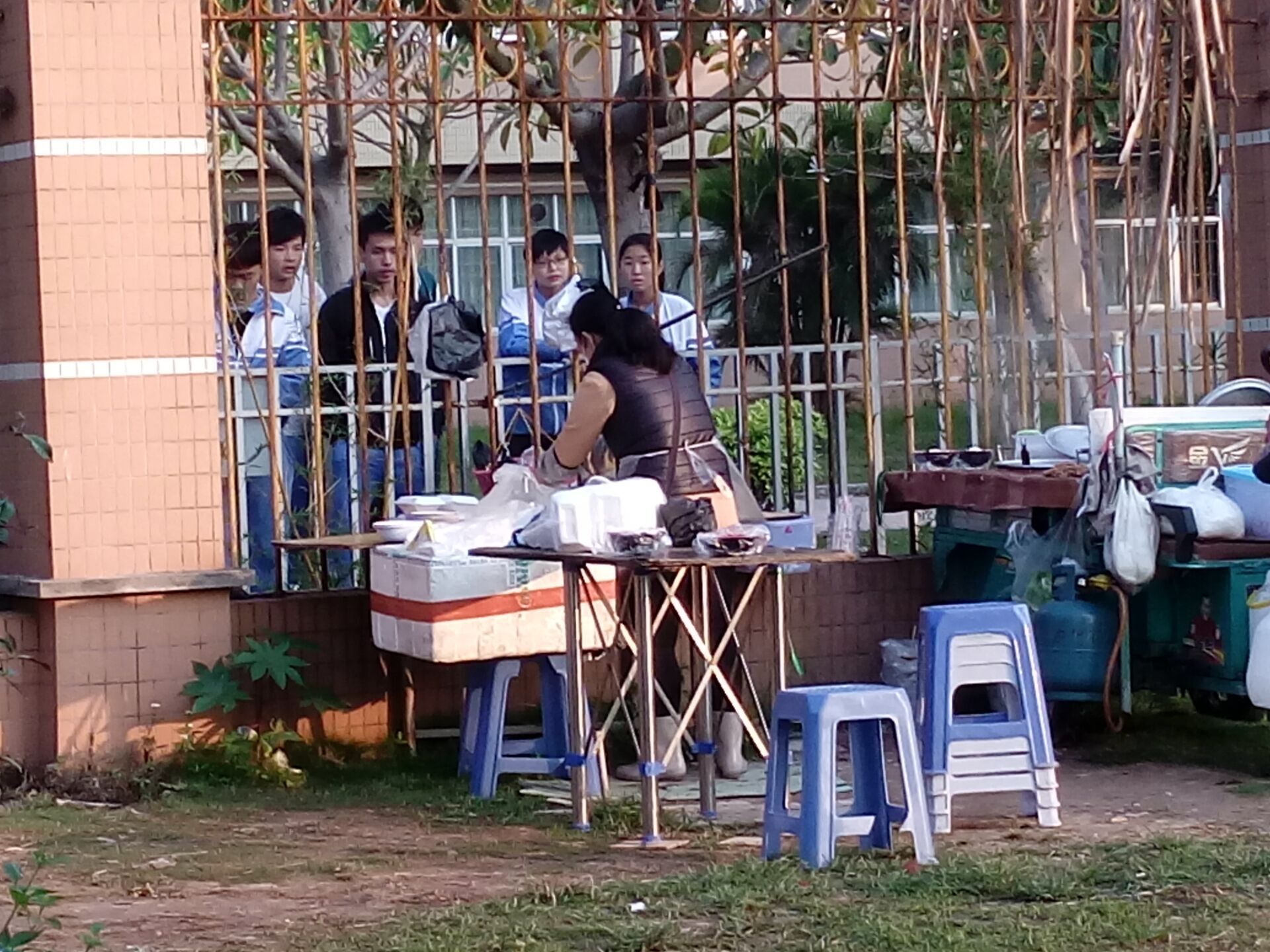 早上已经接近八点,仍有学生在围墙购买食品。