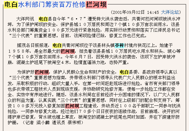 您好!首先感谢你对电白区水利工程的关注。关于你反映的问题,我局领导高度重视该网络舆情,现将调查情况答复如下: