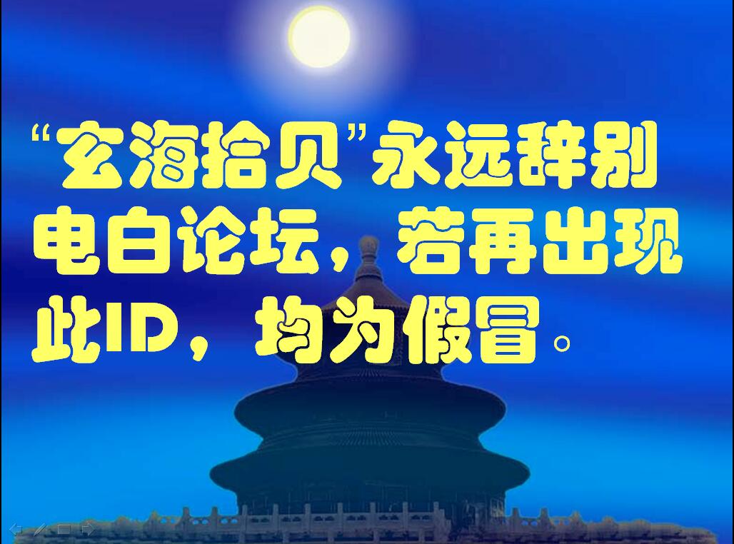 老贝只是说这个ID已经被美国007所监控,为了避免周星驰版007找他麻烦,“玄海拾贝”自我闭杀,但老贝并没有宣布自己归山,他意将以别的马甲继续在本论坛弘扬他所知道的风水文化。