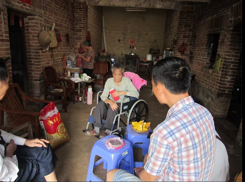 2018年清明节期间, 邓辉容老师带着杨威、杨瀛、杨秀娟、杨雪华从河北省回南海半岛祭扫逝去的亲人。邓老师一行下榻水东凤凰城迎宾馆,我陪同邓枢干老师去拜访了这一家人。杨威、杨瀛、杨秀娟、杨雪华均出生于邢台市,他(她)们和母亲在下里艰难地生活了10年,当听到这一家子还说着一口流利的黎话时,我感到亲切。邓辉容老师,长着一副冬瓜脸,五官清秀,97岁了,过去那段不幸的遭遇并没有压垮她,她的精神还是那么好,这位慈祥的老教师,晚年儿孙绕膝,享天伦之乐。听下里群众说,邓辉容老师有一个孙子是国务院办公厅干部。