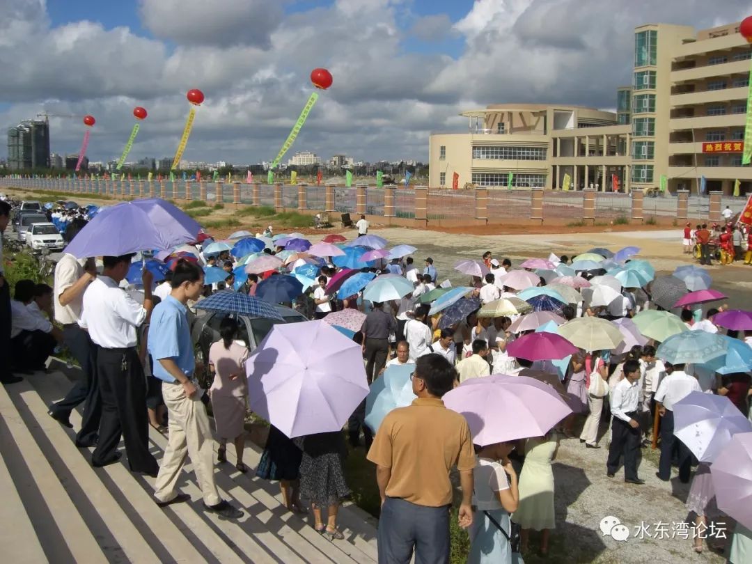 2006年8月30日,天气晴朗,蓝天白云,电白一中搬迁到新校区。整个校区只有那六幢教学楼可以用,只有一条环校道是硬底化。接下来的两、三年,一中的师生经历了什么呢?生活上的不便利、教学设备的欠缺,校园建设严重滞后,停电停水常有、碰上下雨天,经常是脚踏黄泥水到教室,全体师生为校园植树种草是常见的事,体育课、电脑课、学生活动怎么办?可以想象一下当时的景象。还有晚上回校看晚自习,下班的路上,一个人根本不敢走夜路……但那时那些困难全体师生都克服了,他们也成为新校区的开荒牛。