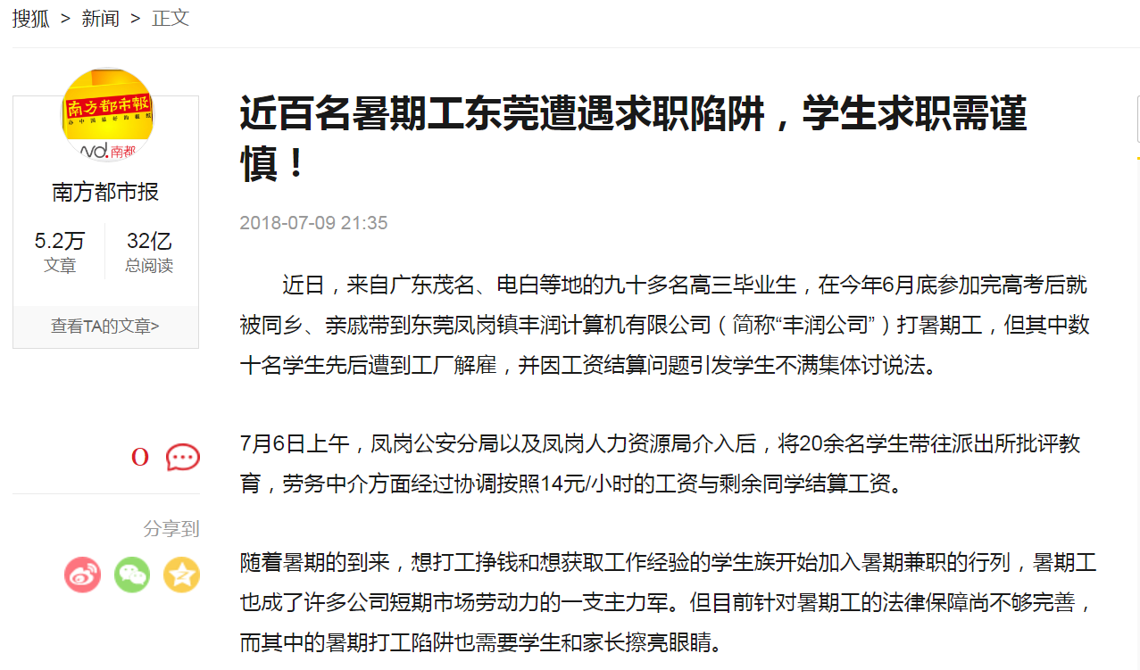 新闻 近百名暑期工东莞遭遇求职陷阱,学生求职需谨慎! (2人在浏览)