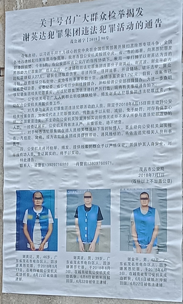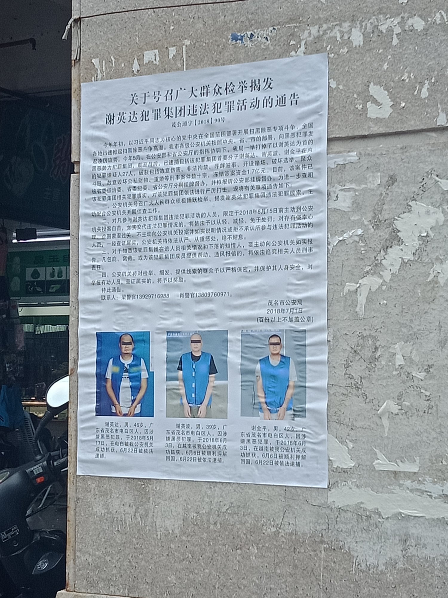 新闻 关于号召广大群众检举揭发谢英达犯罪集团违法犯罪活动的通告 (1人在浏览)
